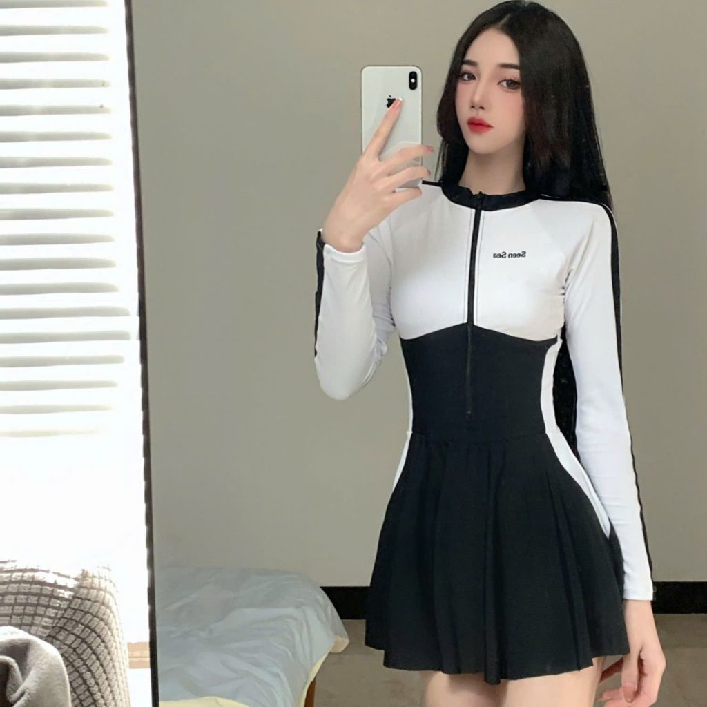 Đồ bơi tay dài giữ nhiệt thường dày và che phủ toàn thân, giúp bảo vệ da khỏi các tác nhân bên ngoài như tia UV, chất clo trong bể bơi, hoặc các sinh vật biển như sứa.