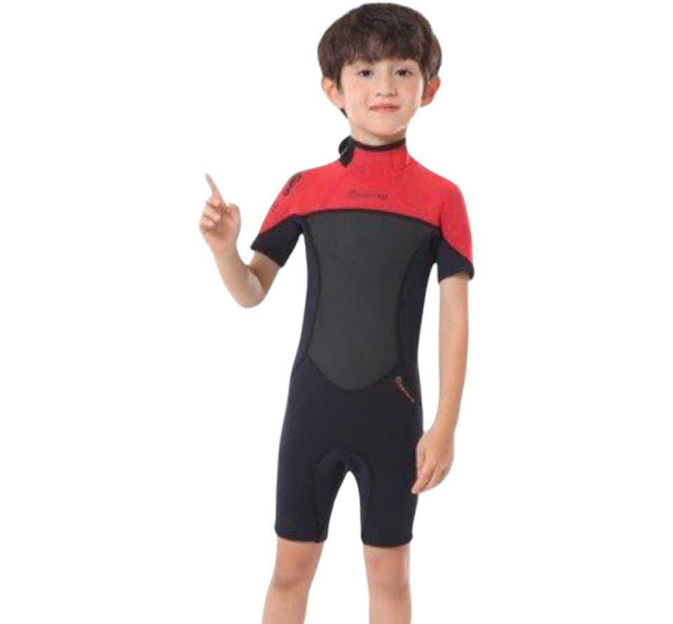Áo bơi giữ nhiệt ngắn đỏ phù hợp cho bé trái và bé trai