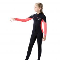 - Gồm một lớp cao su neoprene 2,5mm ở giữa, mặt ngoài được phủ lớp vải mịn giúp giữ nhiệt, cách nhiệt, cản gió, chống lạnh cho bé vui chơi lậu hơn dưới nước.